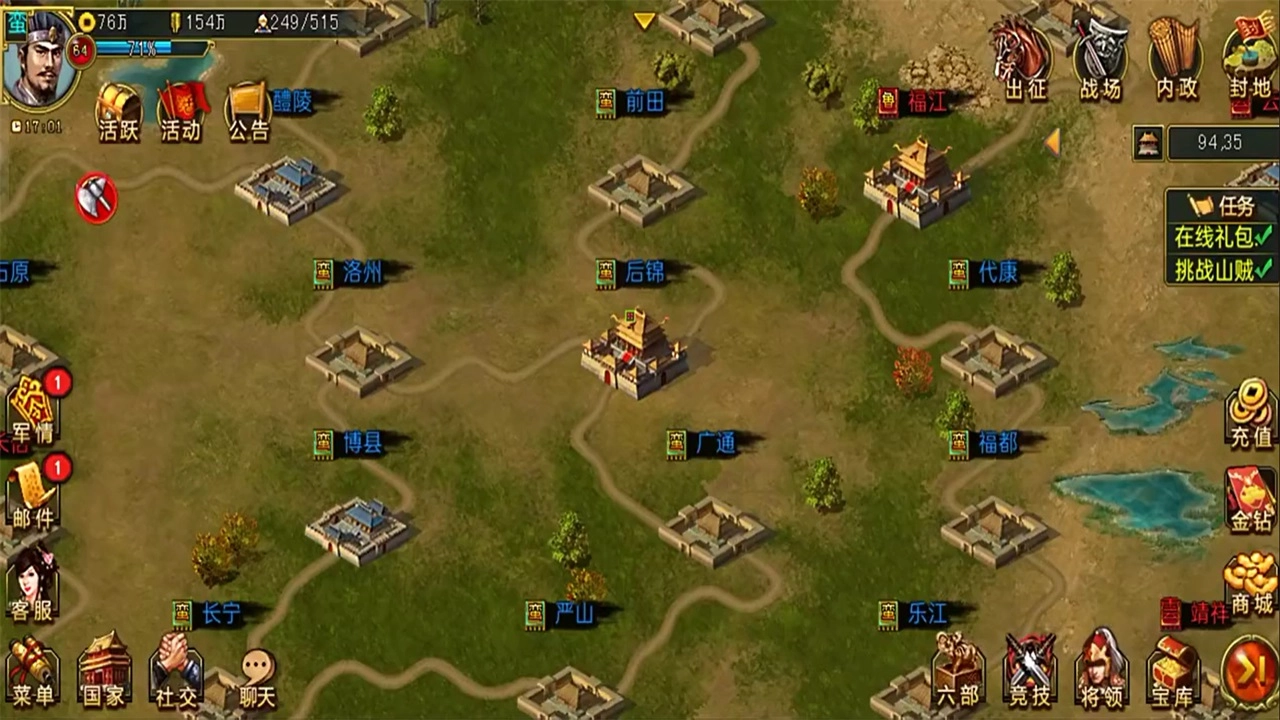 2. 游民不能驻防本国的城池,也无法驻防本国玩家的封地,同时无法享有国家的科技加成。