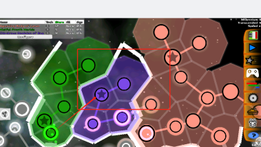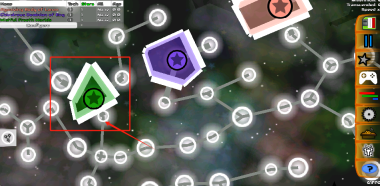 3、留意不同颜色的六边形区域,绿色代表你的领地,点击它们可以管理星球。