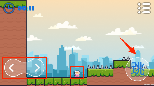 3、下方左右箭头控制人物前进和后退,点击“跳”可以进行跳跃。