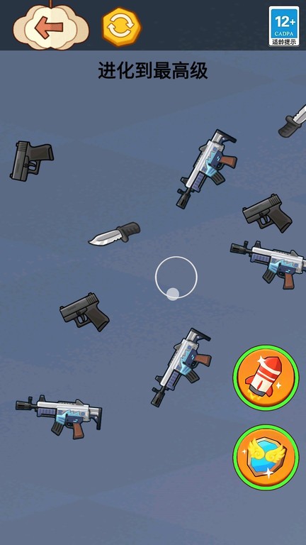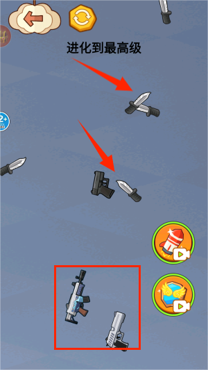 3、可以通过不断靠近收集合成进化,但是如果更高级的枪支要注意躲避。