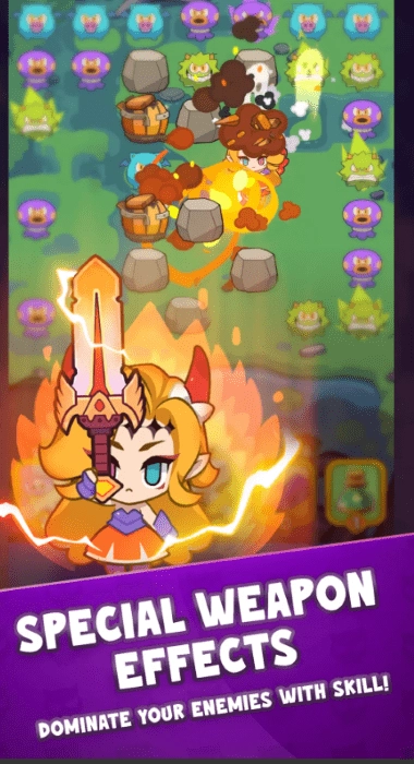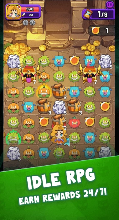 在这款匹配3rpg益智游戏中,以风格击倒您的敌人,并探索最适合您策略的多种武器组合。