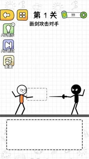 1、核心玩法之一是通过屏幕画线阻挡飞来的危险物品,保护火柴人不被击中,考验反应速度与手眼协调能力。