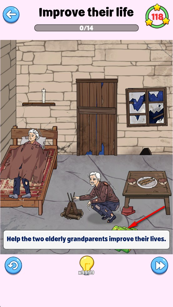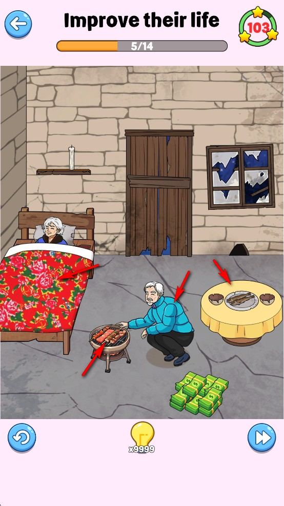 我们需要花费一些钱来让两位老人过上富裕的生活,只需将钱移动到相应的物品上即可。