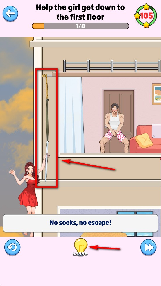 如图不断地延长最后让女友安全落地,如果不知道下一步该怎么办了可以点击灯泡获得提示。