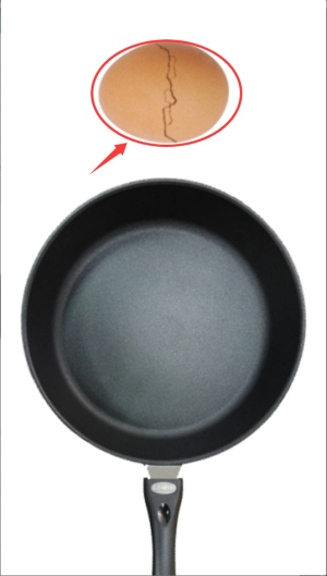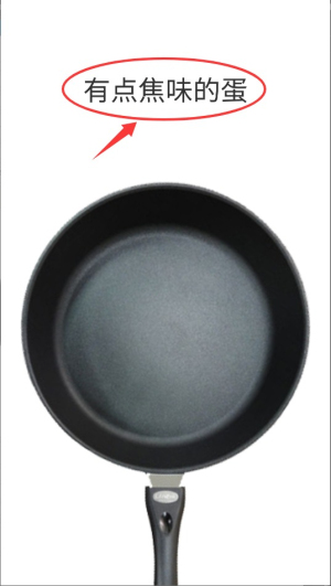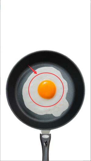 1、轻触屏幕让鸡蛋落入锅内,留意蛋液的变化来调节火力,避免因温度过高而煎糊,从而影响食物的口感。
