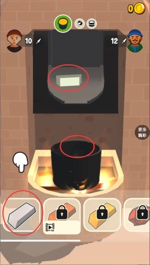 1进入关卡后,首先挑选合适的材料来锻造武器,因为刀剑的不同材质会对其后的攻击力和准确度产生影响。