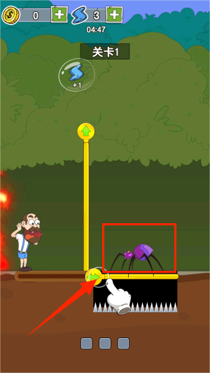 1前方有一只大蜘蛛,移动拉杆,使蜘蛛掉落。