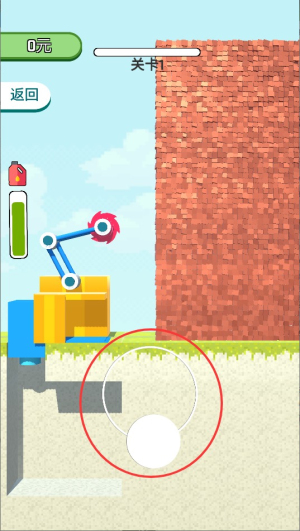 2、通过手指滑动精准控制机械臂移动方向,瞄准堆叠的砖块发起冲击,感受逼真的物理碰撞与碎裂快感。