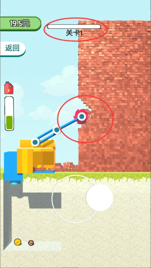 1、基础操作简单直观,通过滑动控制铲斗摆动幅度。长按屏幕蓄力增强冲击力度,把握释放时机实现精准打击,破坏特定区域可获得奖励分数。
