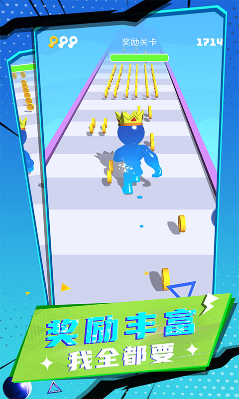 1、独特的吞噬成长系统,颠覆了传统的跑酷游戏模式,让橡皮人可以通过收集食物来实现体型和能力的双重提升。