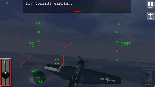 2、根据关卡提示,完成飞机降落要求,左侧是油门,右侧是俯仰角度。