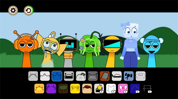 1进入游戏后,你会看到上方显示着各个人物,而下方则是各种不同的音符。