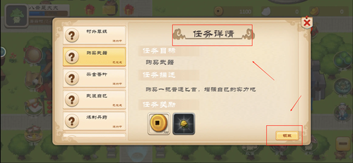 1、开始游戏,游戏提供了很多内容,进入游戏地图后可以选择接取任务赚取素材。