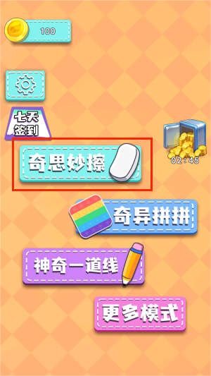 1、进入游戏后,有多个游戏模式,比如奇思秒擦、奇异拼拼、神奇一道线等等。