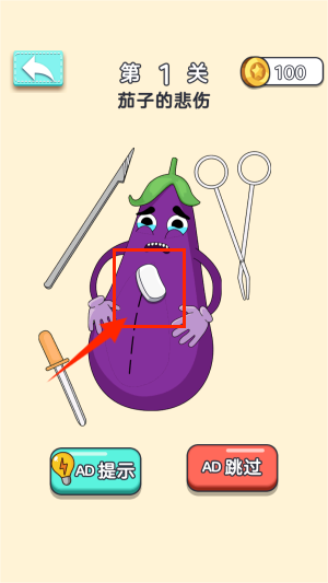 2、选择奇思妙擦进入挑战,游戏中有一个茄子,它看起来很不舒服,赶紧用橡皮擦看看它到底发生了什么。