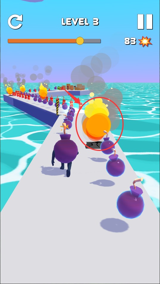 疯狂轰炸人这款游戏非常刺激,是一款休闲闯关的小游戏。每一关都充满了各种障碍,你需要反应迅速地避开它们。只要成功到达终点就算胜利,听起来简单但实际上并不容易。游戏操作不难,很容易上手。游戏内有大量的关卡,足够你玩上好一阵子。