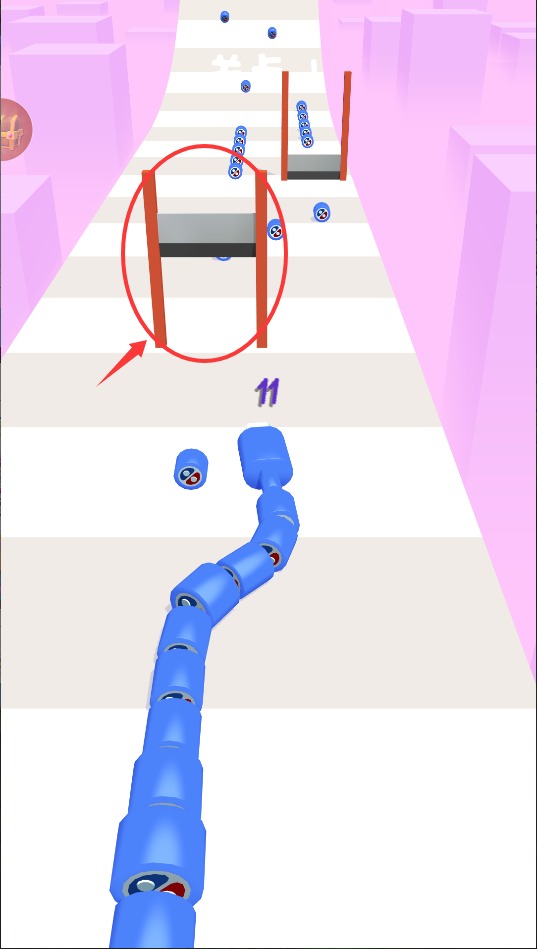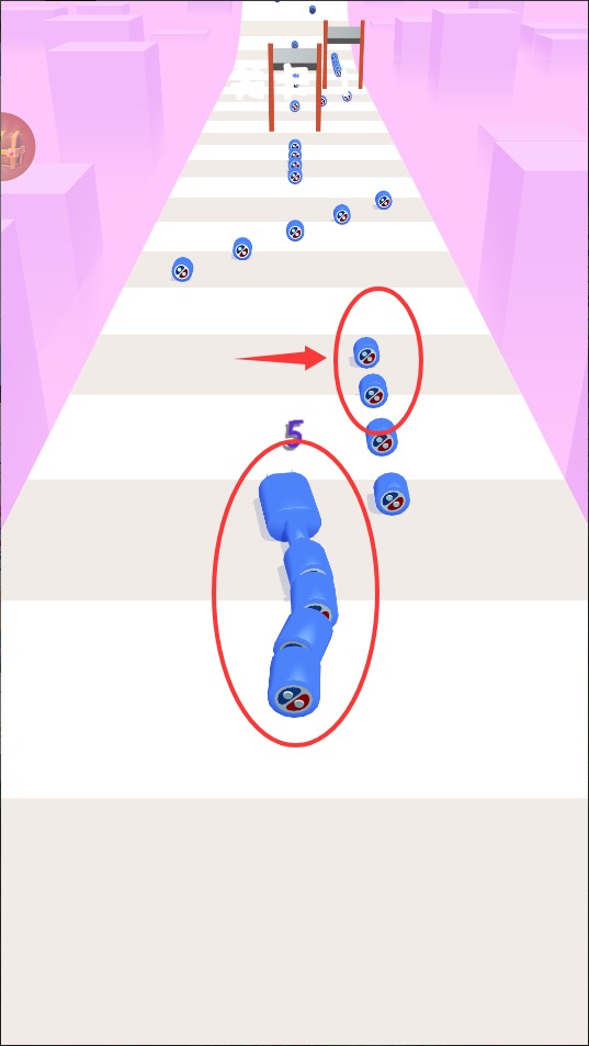 2、滑动手指控制角色移动,精准采摘道具实现体型增长,随着分数提升难度逐步增加。