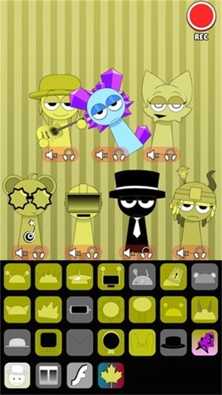 1进入游戏后,你会看到上方显示着各个人物,而下方则排列着各种不同的音符。