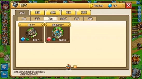 1、在【建造】→【劳动】→【资源】内可以看到小小村长的三大资源类型:农田和南瓜田可以保障小小村的粮食充足;树木跟紫叶,是小小村的木材保障;而石矿与金矿,则是小小村富强的彰显与代表!