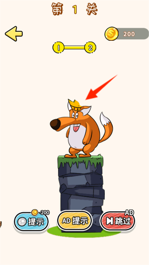 1、启动应用后,选择“脑洞小天才”模式开始趣味挑战。在屏幕中央会显示一顶缺了一角的狐狸王冠,等待你来修补完整。