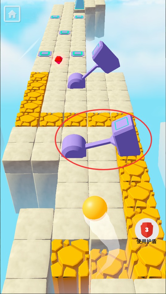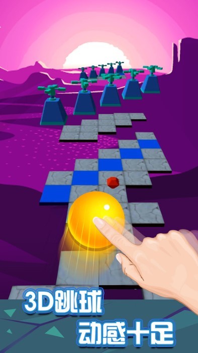 2、游戏过程中需用手指在屏幕上左右滑动,通过改变方向来控制圆球的移动轨迹,保持平稳前进。
