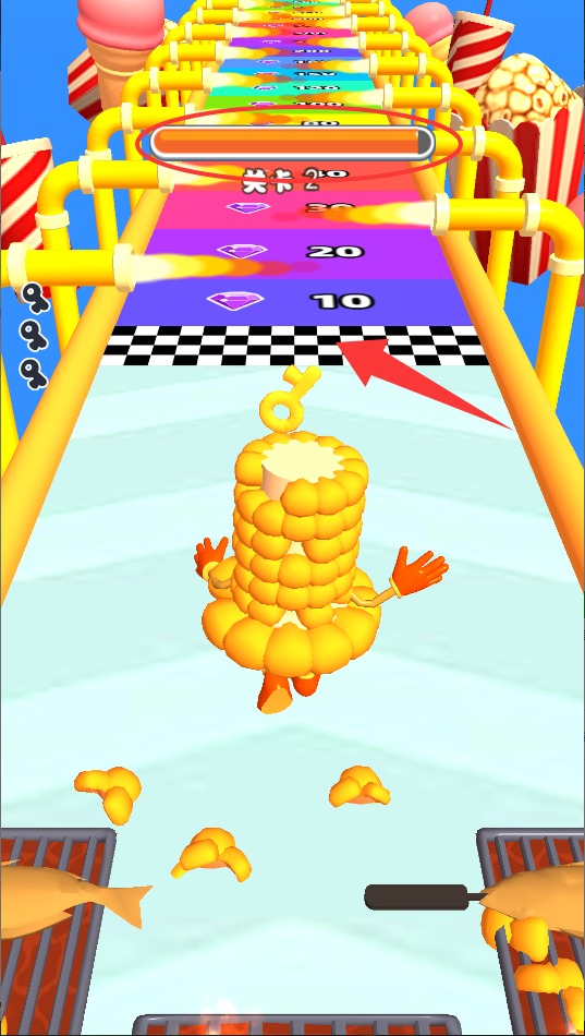 1、在经典跑酷模式中,操控爆米花角色持续前进,巧妙避开各种障碍和陷阱。