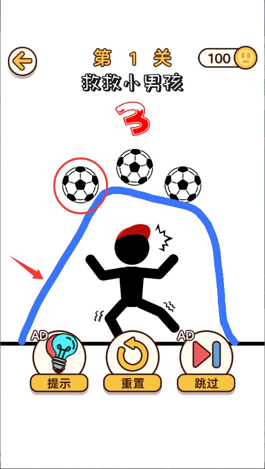 2、关卡顶部会写清楚通关要求,左下角的小字提示别忽略。比如要保护几个火柴人,或者坚持多少秒。