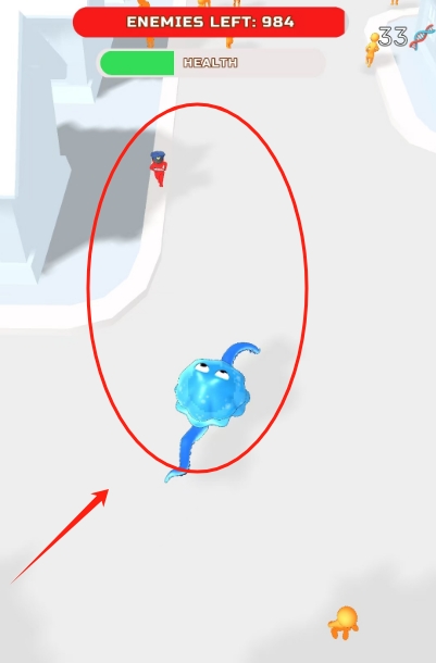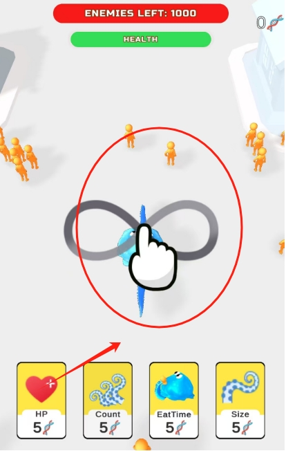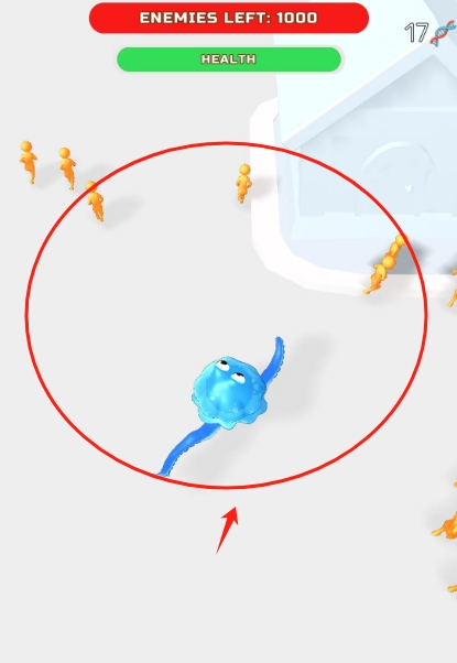 1、通过滑动手指来控制乌贼不断膨胀,将红色士兵“噗噗”地弹飞,效果极其震撼。