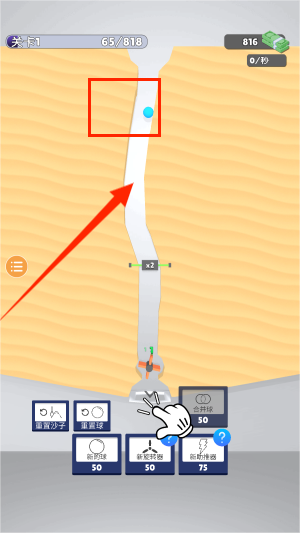 2、使用铲子道具清除泥土障碍,为小球开辟下坠通道。挖掘时需避开固定支架等不可移动的部件。
