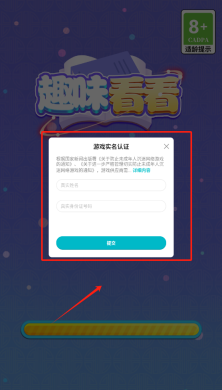 1、这是游戏登录界面,您需要先完成实名认证才能开始游戏。请输入您的真实姓名和身份证号码,然后点击蓝色的提交按钮,等待加载条完成即可进入游戏。