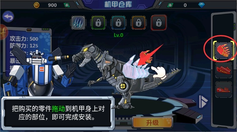 1. 游戏开局后,通过滑动屏幕,把散落的组件进行拖拽并组合起来。当成功完成拼装,就能激活龙兽的合体形态,进而提升角色的战斗能力。