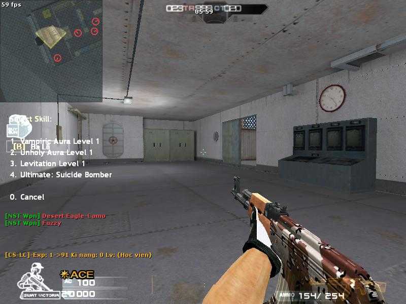 幽灵模式:警察一方与爆破模式无异,匪徒则是拥有隐身的能力,但是当匪徒开始移动后会变的可以被看见(此模式匪徒不能用枪)。