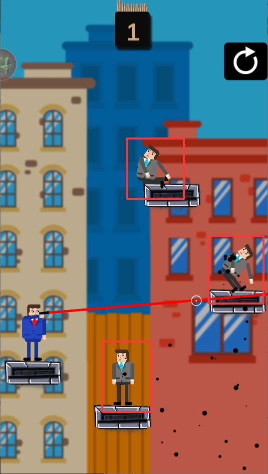 1、核心的弹射机制挑战玩家的空间思维能力。玩家必须预测子弹的反弹路径,并借助墙壁、道具等环境因素来实现弧线射击。