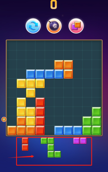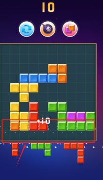 3、清除底部红色框中的方块,赢得分数,并继续挑战以获得更高分,消除更多的方块。