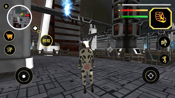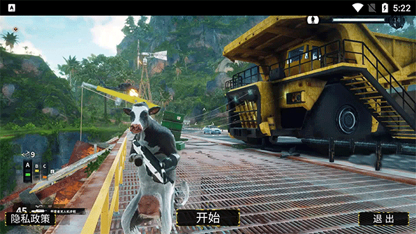 1、这是一款开放世界类型的动作射击冒险游戏,在游戏里,你将化身为一头无拘无束、无法无天的奶牛,于广阔的地图之中展开战斗。