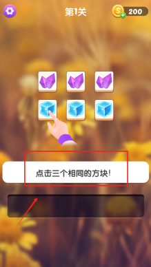1、点击下方蓝色方块消除相同图案,按提示凑三连过关。