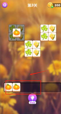 3、点击相同图案的相连方块进行消除,利用免费道具通过第三关。