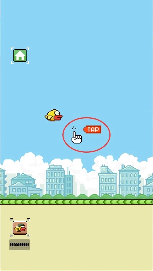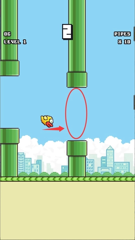 3、让小鸟从管道中间钻过去就能得分,碰到管子或者掉地上游戏就结束,看你能坚持多久。