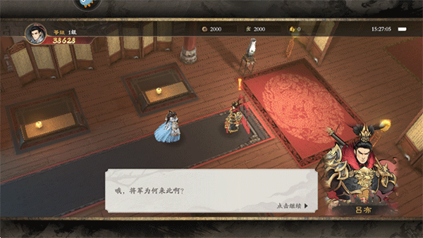 4、点击与吕布进行互动,把吕布支走后,进行刺杀董卓任务;
