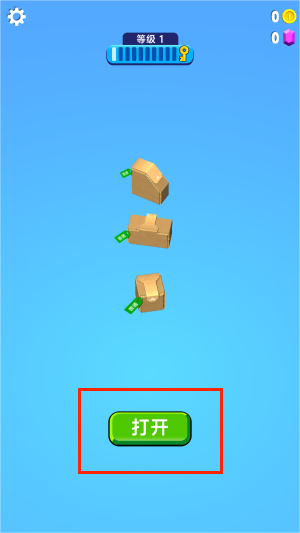 1、启动应用后,点击屏幕中央闪烁的"打开"按钮即可开启拆盒挑战。
