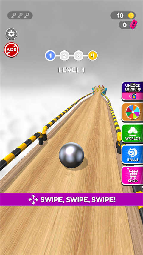 游戏关卡采用随机生成机制,玩家可解锁更多精美的保龄球款式。