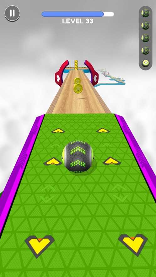 2、玩家只需要点击屏幕控制球的运行即可,快速向前滑动,球的速度就会增加,向后滑动,它就会开始减速;