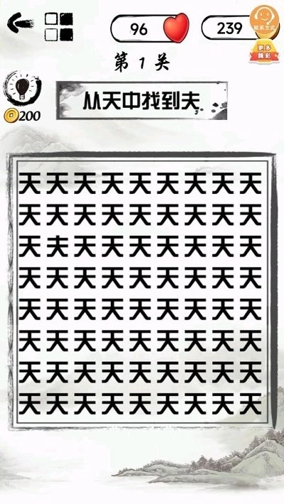 3、快速浏览满屏文字内容,找出隐藏其中的"夫"字符号。