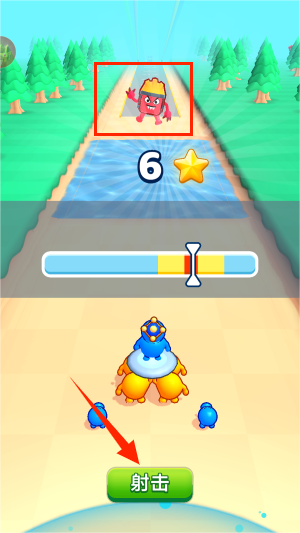 2、关卡中不断出现移动障碍物,通过左右滑动屏幕控制准星瞄准。
