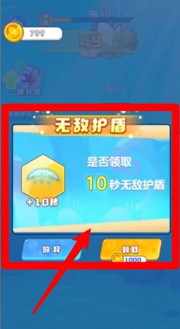 2.无敌护盾机制说明:可通过消耗1000金币或任务奖励领取“无敌护盾”道具,开启后小鱼将在10秒内免疫任何碰撞与伤害。