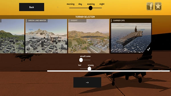 4、每架飞机均配备了真实武器,且各自具备独特的物理特性、机翼,同时还能对一天中的时间进行选择。