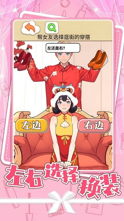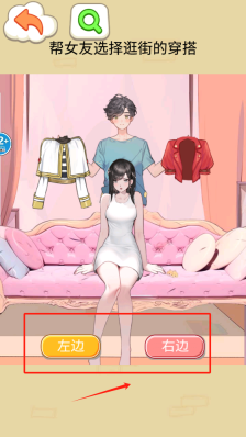 3、点击左边或右边按钮帮女孩挑选逛街衣服,根据男生举着的衣服款式做选择。