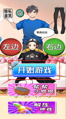 2、点击右边按钮帮助男生做选择,然后点击醒目的蓝色开始游戏按钮进入游戏。
