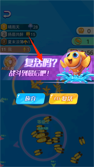 1、点击进入"鱼群大乱斗"模式,开启紧张刺激的海洋生存挑战。