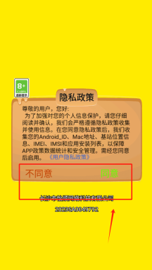 1、点击同意按钮接受隐私政策,或者点不同意放弃使用,下方显示公司名称和版本号。